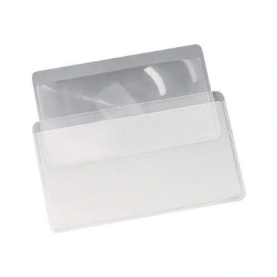 A lightweight, Fresnel, compact, reading aid at a ideal size of 55 x 85 mm which is the same size as the credit card Easily magnifies small text for extra help when reading and comes with a plastic wallet to protect the lens Comes with a plastic wallet to protect the lens Wallet Size: 94 x 61 mm
