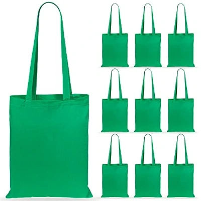 eBuyGB Pack of 10 Cotton Shopping Canvas and Beach Tote Bag 42 cm, Green