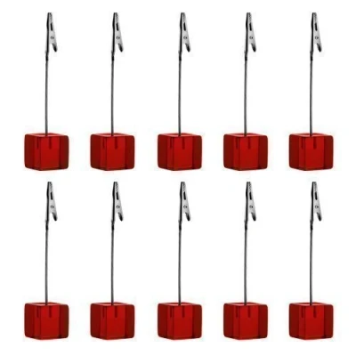 Decorative and functional Resin cube base equipped with a strong metal alligator clip, allowing your memo holder to grip instructions or photos Customise your table to meet the demands of your guests Available in an assortment of colours Dimensions: Base 2.5 x 2.5 x 2.5 cm / height 11.5 cm