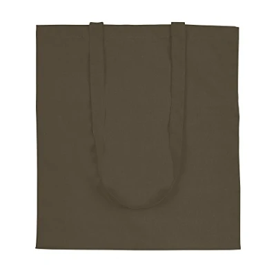 eBuyGB Pack of 5 Plain Reusable Shopping Bags, Cotton Tote Shopper Shoulder Bags Canvas Grocery Bag, Brown 40cm x 36cm