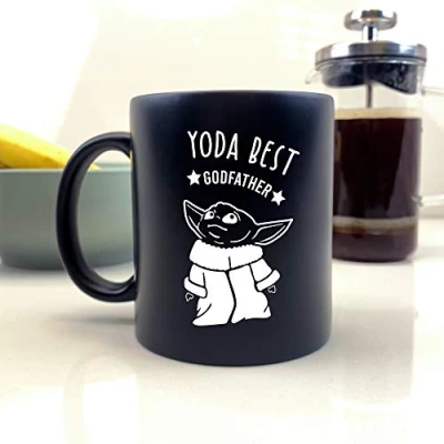 This perfect personalised Star Wars themed Coffee Mug will no doubt create a big smile. A cute surprise for Birthday's, Anniversaries, Father's Day, Mother's Day, Christmas or any special occasions. Our Coffee Mug is engraved with "Yoda Best Godfather", two star illustrations and a cute Baby Yoda. A perfect keepsake for those star wars lovers out there. A perfect gift to show your loved one how much you love them each time they have a cup of tea or coffee. Capacity: 350ml