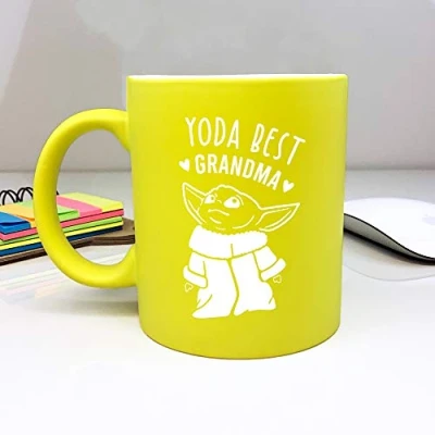 eBuyGB Personalised Coffee Mug, Neon Yellow Baby Yoda 310ml Star Wars Themed Tea Cup, Funny Gifts for Grandma, Nanna, Granny (Yoda Best Grandma)