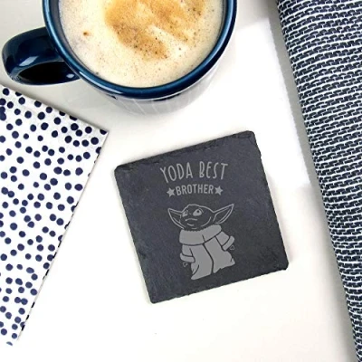 eBuyGB Personalised Square Slate Coaster, Engraved Baby Yoda Star Wars Themed Drinks Mat, Funny Gifts from Sister, Brother (Yoda Best Brother)