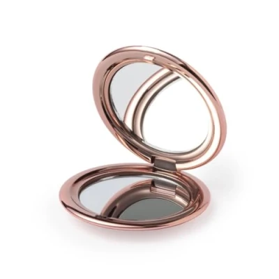 eBuyGB Rose Gold Metallic Compact Makeup Mirror, Small 1X/2X Magnifying Round Double Sided Pocket Portable Folding Mirror for Travel, Birthday