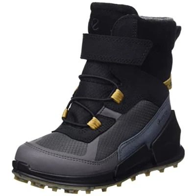 Style, comfort and durability with a mix of rich ECCO Leathers, suedes and premium, hardwearing textiles, with the padded collar enhancing comfort and support Natural movement and stability with BIOM technology, with its low-to-the-ground construction, along with an anatomical, secure and comfortable fit Growing feet can move more freely thanks to the extra room at the forefoot, while the flex zones in the midsole add flexibility Feet stay cosy with the GORE-TEX warm lining, which offers waterproof protection, along with the removable insulating insole and the 100 per cent recycled lining Easy on and off, and adjustable fit and comfort, with the quick fastener and elastic closure Good grip from the hardwearing rubber outsole, which has a rugged tread pattern, is made with ECCO FLUIDFORM Direct Comfort Technology, and has a unique look as it is 10 per cent made of recycled rubber granules which vary in colour