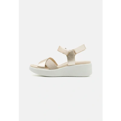 ZalandoECCO Flowt Wedge LX Platform sandals pure white/gold Sale at Zalando UK | Upper material: leather and textile/Lining: textile/Sole: synthetics/Insole: leather | Sale order at Zalando UK! Size: 3.5. Color: Pure white/gold.