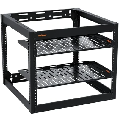 ECHOGEAR 10U Network Rack Wall Mountable Heavy Duty 4 Post Design Holds All Your Networking & AV Gear Open Frame Includes 2 1U Vented Shelves Mounting Hardware
