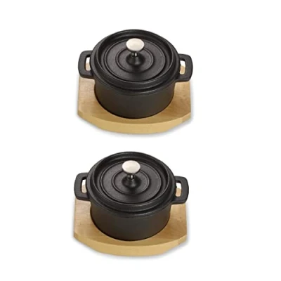 ECHTWERK Cast Iron Cooking Pot Set, Mini with Serving Board, Small Roasting Tray, Pre seasoned, Suitable for Ovens, Grill, BBQ and Induction, Ideal Serving, 250 ml, 2 Piece