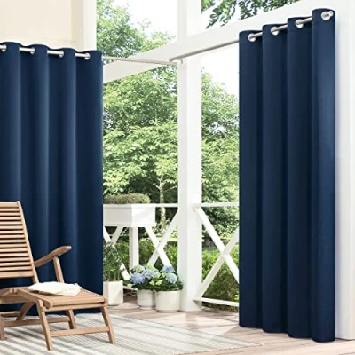 Eclipse Bradford Versatile Blackout Waterproof Grommet Window Curtain for Indoor or Outdoor (1 Panel), 52 in x 63 in, Navy