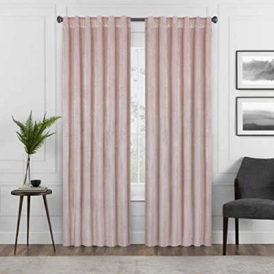 Eclipse Harper Velvet Rod Pocket Curtains for Bedroom, Single Panel, 50" x 108", Blush