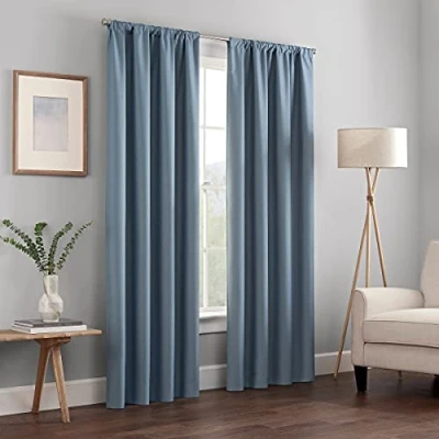 PATTERN - No more sacrificing design for capability! The perfect marriage between Modern/Contemporary style and high functionality. This simple yet stylish solid curtain instantly elevates any room. Sold as a single panel. LIGHT BLOCKING - Eclipse blackout curtains block out between 98% to 99.9% of sunlight and harmful UV rays to ensure upmost privacy. Perfect for any living room, bedroom, kids room or nursery window! ENERGY EFFICIENT - Patented Thermaback technology designed to block out intrusive sunlight reduces unwanted noise and offers thermal benefits. Provides an insulated barrier against summer heat and winter chill to balance your room temperature and save on energy bills. EASY SET UP - A convenient Rod Pocket header effortlessly slides over your preferred curtain rod (not included) for quick and easy installation. Ready to be hung right away! CARE INSTRUCTIONS - Machine washable for fuss-free upkeep in gentle cycle and cold water. Do not bleach. Warm iron and tumble dry at low temperatures.