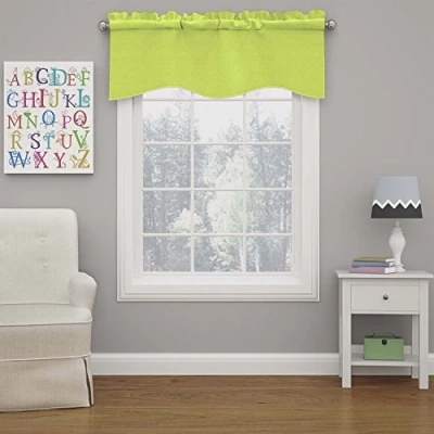 ECLIPSE Kendall Modern Scalloped Valance Rod Pocket Window Curtain for Kitchen or Bathroom, 42" x 18", Lime