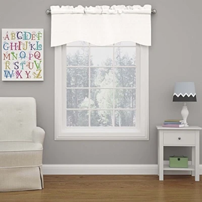 ECLIPSE Kendall Modern Scalloped Valance Rod Pocket Window Curtain for Kitchen or Bathroom, 42" x 18", White
