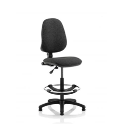 Cushioned seat pad with waterfall front. Cushioned dished seat design• Contoured backrest for added comfort. Single lever mechanism for gas lift control. Backrest angle adjustment. PCB: permenant contact backrest. Optional armrests.
