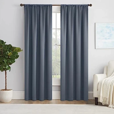 The Eclipse Solid Thermapanel brings style and energy efficieny to any home Utilizing Eclipse’s Thermaweave technology, this curtain features room darkening fibers woven into a soft, drapable fabric Thermal properties help keep your home cool in the summer and warmer in the winter Rod Pocket fits a curtain rod up to 1.25 inches in diameter. Panels solid individually and measure 54 inches in width. Measure carefully prior to purchase. Image features 2 panels.
