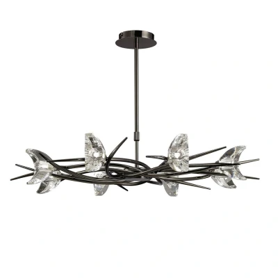 The Eclipse Telescopic Pendant Light in Black Chrome offers a stunning eight-light design crafted from K9 clear crystal. This fixture's elegant style complements modern interiors, providing a stylish and functional lighting solution.