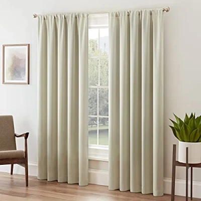 PREMIUM QUALITY - Masterly crafted 100% Polyester room darkening curtains. Sold as a single panel (Panel measures 52" wide and 84" long). LIGHT BLOCKING LEVEL - Eclipse Room Darkening curtains blocks out between 93% to 97.9% of sunlight and harmful UV rays and ensures upmost privacy. Perfect for your living room, bedroom, kids room, nursery and more! ENERGY EFFICIENT - Patented Thermaback technology designed to block out intrusive sunlight reduces unwanted noise and offers thermal benefits while providing all of the luxury and style of naturally flowing draperies. Provides an insulated barrier against summer heat and winter chill to balance your room temperature and save on energy bills. EASY SET UP - 2" Rod Pocket design fits any standard or decorative rod for quick and easy installation. Ready to be hung right away. CARE INSTRUCTIONS - Machine washable in gentle cycle and cold water, do not bleach. Warm iron and tumble dry at low temperatures.