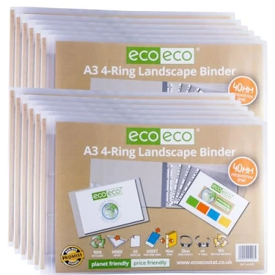 eco A3 95% Recycled 4 D Landscape Clear Presentation Ring Binder File Folder, 40mm Spine, Artwork Portfolio, Pack of 12 Folders, eco203x12