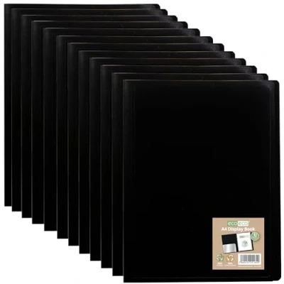 eco A4 100% Recycled 10 Pocket Black Flexible Cover Portfolio Book Folder Display Book, Pack of 12 Books, eco160x12