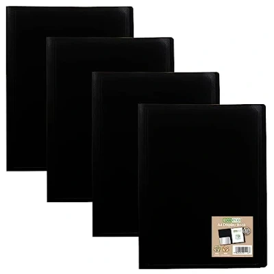eco A4 100% Recycled 100 Pocket Black Flexible Cover Portfolio Book Folder Display Book, Pack of 4, eco116x4