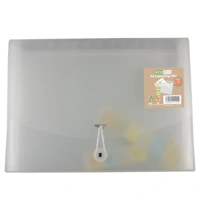 Strong Clear 700 micron expanding file with clear 160 micron A4 size internal compartments 13 compartments which are ideal for multi purpose filing. Comes with 3 sets of tabs. 1 sets of blanks coloured tabs, 1 set of A-Z tabs and 1 set of Jan-Dec monthly tabs. Elasticated closure Responsibly sourced materials and responsibly produced Made from 50% recycled materials, product and packaging both 100% recyclable