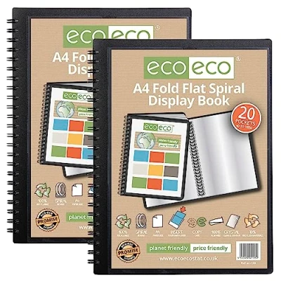 eco A4 50% Recycled 20 Pocket Fold Flat Spiral Bound Display Book, Pack of 2, eco133x2