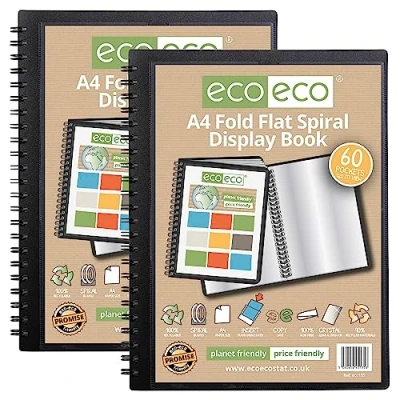 eco A4 50% Recycled 60 Pocket Fold Flat Spiral Bound Display Book, Pack of 2, eco135x2