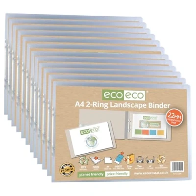 eco A4 95% Recycled Presentation 22mm Spine 2 Ring Landscape Binder Clear, Pack of 12, eco204x12