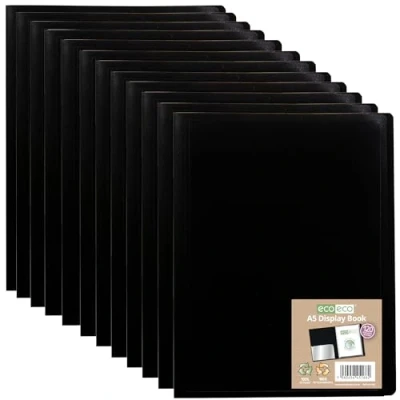 eco A5 100% Recycled 120 Pocket Black Flexible Cover Portfolio Book Folder Display Book, Pack of 12 Folders, eco166x12