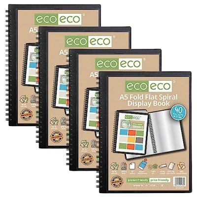 eco A5 50% Recycled 40 Pocket Fold Flat Spiral Bound Display Book, Pack of 4, eco137x4