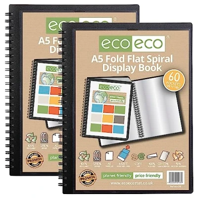 eco A5 50% Recycled 60 Pocket Fold Flat Spiral Bound Display Book, Pack of 2, eco138x2