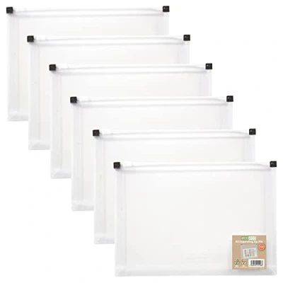 AmazonStrong 180 micron strength A5 size zip wallet Expanding bottom and sides for extra capacity, securely holds A5 documents with zip closure Pack of Six.ClearAcid free and copy safe Made from 95% recycled materials, product and packaging both 100% recyclable
