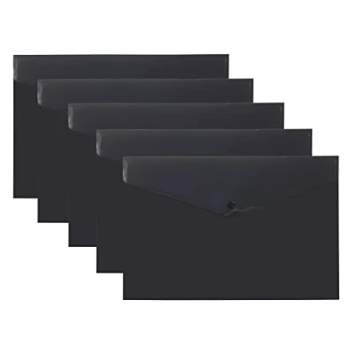 eco A5 50% Recycled Solid Press Stud Popper Wallet, Plastic Folders (Pack of 5), Black, eco075BLACK
