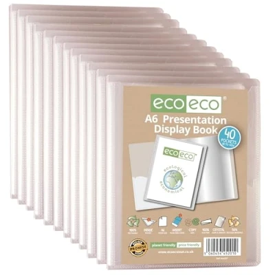 eco A6 Size 50 Percent Recycled 40 Pocket Clear Presentation Display Book, Storage Case Portfolio Art Folder with Plastic Sleeves, Pack of 12 Folders, eco201x12