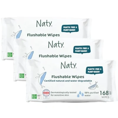 FLUSHABLE & NATURAL TODDLER WIPES: Tested safe to flush. Soft, plant based, plastic-free, flushable wet toilet tissue infused with 98% purified water & mild, natural ingredients to gently, effectively clean sensitive skin. Dermatologically tested. NATURAL INGREDIENTS: Made with certified natural, responsibly sourced ingredients (COSMOS Natural), including organic Aloe vera and Chamomile water, known for their mild, soothing properties. Ideal for potty training and kids toilet training. PLANT-BASED & PLASTIC-FREE WIPE: Made from 100% plant-based, plastic-free fibres from FSC-certified forests. Tested to INDA/EDANA flushability standards when flushed one wipe at a time and TÜV Austria certified to biodegrade safely in water. KIND TO SENSITIVE SKIN & FRAGRANCE FREE: PH-balanced and made without fragrance, drying alcohols, parabens, phenoxyethanol, mineral oils or essential oils — cleans better than toilet paper alone for kids’ toilet use and daily toilet routine. 30 YEARS OF TRUSTED CARE: Developed in Sweden since 1994, by a pioneer in plant-based, certified skin-safe hygiene care. Award-winning products for babies and women across diapers, wipes, maternity and period care. From Naty — previously Eco by Naty