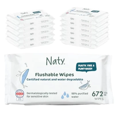 FLUSHABLE & NATURAL TODDLER WIPES: Tested safe to flush. Soft, plant based, plastic-free, flushable wet toilet tissue infused with 98% purified water & mild, natural ingredients to gently, effectively clean sensitive skin. Dermatologically tested. NATURAL INGREDIENTS: Made with certified natural, responsibly sourced ingredients (COSMOS Natural), including organic Aloe vera and Chamomile water, known for their mild, soothing properties. Ideal for potty training and kids toilet training. PLANT-BASED & PLASTIC-FREE WIPE: Made from 100% plant-based, plastic-free fibres from FSC-certified forests. Tested to INDA/EDANA flushability standards when flushed one wipe at a time and TÜV Austria certified to biodegrade safely in water. KIND TO SENSITIVE SKIN & FRAGRANCE FREE: PH-balanced and made without fragrance, drying alcohols, parabens, phenoxyethanol, mineral oils or essential oils — cleans better than toilet paper alone for kids’ toilet use and daily toilet routine. 30 YEARS OF TRUSTED CARE: Developed in Sweden since 1994, by a pioneer in plant-based, certified skin-safe hygiene care. Award-winning products for babies and women across diapers, wipes, maternity and period care. From Naty — previously Eco by Naty