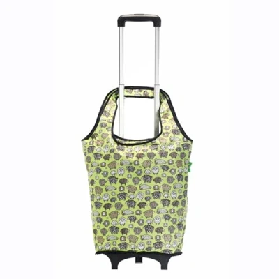 Eco Chic Lightweight Collapsible Shopping Trolley with Detachable Grocery Tote Bag (Cute Sheep Green)