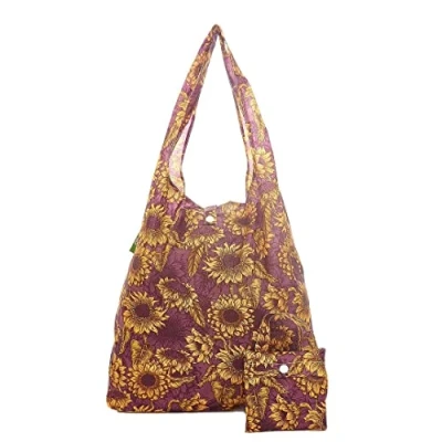 ECO CHIC Lightweight Foldable Reusable Shopping Bag Water Resistant Tote Folds Into Attached Pouch for Storage Made from Recycled Plastic Bottles (Sunflower Purple)