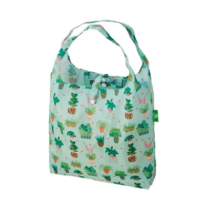 ECO CHIC Lightweight Foldable Reusable Shopping Bag Water Resistant Tote (House Plant Mint)