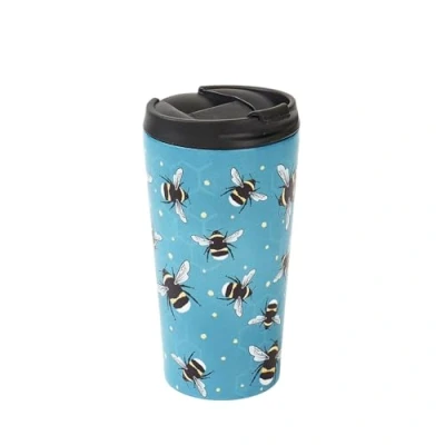 ECO CHIC Reusable Thermal Coffee Cup Stainless Steel Leakproof Insulated 330ml Travel Mug (Bumble Bees Blue)