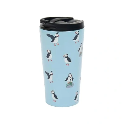 ECO CHIC Reusable Thermal Coffee Cup Stainless Steel Leakproof Insulated 330ml Travel Mug (Multi Puffin Blue)