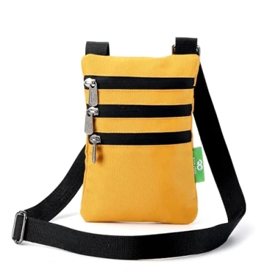 EFFICIENT ORGANISATION: Measuring 19x13cm flat with four zippered pockets, our crossbody phone bag offers ample storage and organisation for phones, keys, cards and cash, ensuring everything has its place. SECURE AND VERSATILE: Ideal for travelling and dog walkers, this handy bag is perfect for ensuring valuables are safely stowed on outings, offering peace of mind and convenience on the go. ADJUSTABLE STRAP: Strap can be adjusted from 75cm to 150cm, so this bag can be worn comfortably across the body or over the shoulder, accommodating different preferences and body types. ECO-FRIENDLY MATERIALS: Made from recycled polyethylene terephthalate (rPET) canvas fabric sourced from recycled plastic bottles, promoting sustainability while maintaining durability and quality. WATER-RESISTANT DESIGN: Crafted from durable and water-resistant canvas fabric with waterproof aluminium alloy zippers, providing protection against rain or spills, ideal for everyday urban or outdoor use.