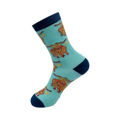 ECO CHIC Womens Bamboo Socks Breathable Hot and Cold Weather UK 4 8 Single Pair (Highland Cow Blue)