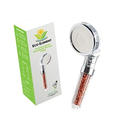 Eco Element 1st Gen Chrome High Pressure Massaging Shower Head Filter. Removes All Harmful Bacteria Including Chlorine, Heavy Metals, and Hard Ions. (100% Recyclable)