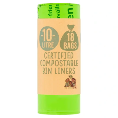 Eco Green Living 10 Litre Bin Liners, Plastic Free, Strong and Leak Proof Refuse Sacks, Large Bags for Food Waste Kitchen Bin, Tie Handle Garbage Bags, 18