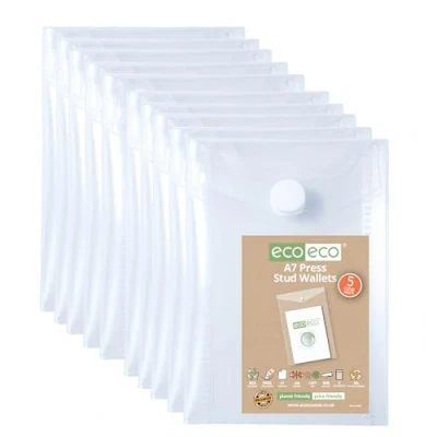 eco Mini 95% Recycled Clear Transparent Portrait Press Stud Popper Wallet, Plastic Folders 74x105mm (Pack of 10), 200mic, eco204x2