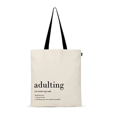 Amazon Spacious Womens Tote Bag: Measuring 14"x15", these canvas bags for women & small tote bag are made of 100% natural cotton fabric with large handles, these ladies tote bags can carry your groceries, travel things & school stuff in one canvas bag. Aesthetic Tote Bag: This cute tote bag comes in a preppy design & various funny prints. Use this cotton tote bag as your college bag, travel tote bag, shopping bag, school handbag, womens work bag, beach tote bag, book bag, laptop tote bag, grocery bag, gym tote bag & more. Eco-Friendly Gifts For Her: These women's totes & work bags for women are your go-to mothers day gifts, easter gifts, birthday gifts for women, engagement gifts, gifts for mum, best friend gifts, anniversary gifts for couple & these bags for girls are the perfect sustainable gifts for women. Easy to Wash Shoulder Bag: This canvas tote bag is machine washable & these handbags for school & shopper bags for women do not shrink on washing. This cute bag is an easily foldable tote bag that fits in your backpack & luggage. Ethically Made: These canvas bags & shoulder bags women are manufactured in ethically certified manufacturing facilities powered with solar energy, these cloth bags & work tote bags for women are 100% biodegradable and come in recycled plastic packaging.