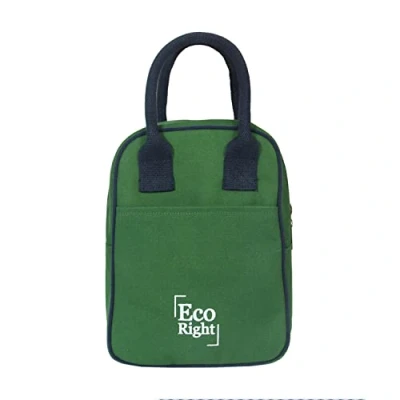 LARGE CAPACITY WITH WATER BOTTLE HOLDER: Measuring 11 x 8.5 x 5 inch. These adult lunch bag come with zip closure, perfectly fits your meal, snack, sandwich & yogurt container in one with an extra front pocket for your essentials. ECO FRIENDLY REUSABLE LUNCH BAGS: Designed for everyday use, this plastic-free modern tote lunch bag women is made from 100% cotton canvas, comes with a simple carry strap handle. ideal to be carried as your fit and fresh lunch bag & travel picnic bag. INSULATED & LEAK PROOF: These lunch pail keep your food fresh and hot / cold for hours with ice packs. This school lunch box kids has a food-safe lining and comes in cute colors & cool designer print. FOOD SAFE & ETHICALLY MANUFACTURED: These men lunch bags for work are tested and certified to be free of BPA, phthalates and heavy metals. These lunchbox for adults are made with love in ethically certified solar-powered facilities in India. WASH CARE: These vegan small cooler bags insulated are machine washable. Cold wash with like colors & air dry. Do not dry clean., Weight: 0.440924524 Pounds, Manufacturer: EcoRight