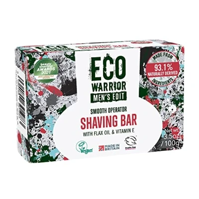 eco Warrior Men's Shaving Soap Bar Coconut & Flax Oil With a Blend of Cedarwood, Birch Tar Patchouli Essential Oils Vegan, Cruelty Free, friendly No SLS or Parabens 100g