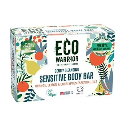 Eco Warrior Sensitive Body Soap Bar Vegan, Cruelty Free, No SLS or Parbens, Gently Cleansing With Green Clay & Orange, Lemon, Eucalyptus Essential Oils Friendly Bar, 100g
